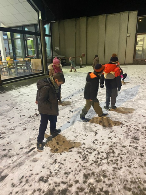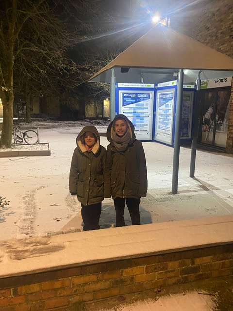 Après le repas et avant de rejoindre les chambres pour la nuit, les élèves ont profité d’un moment très attendu : jouer dehors dans la neige. Même à Louvain-la-Neuve, le paysage hivernal avait réservé une belle surprise, transformant les espaces extérieurs en véritable terrain de jeu. Ces instants en plein air ont permis à chacun de se défouler… Encore !!