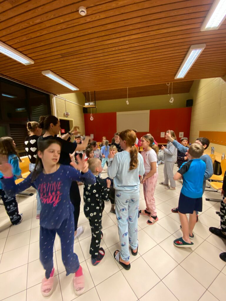 La troisième et dernière journée à Louvain-la-Neuve a commencé sous le signe de la bonne humeur, dans le prolongement d’une soirée de mardi particulièrement réussie. Pour clôturer le séjour en beauté, les enfants ont profité d’une dernière soirée festive durant laquelle ils ont pu chanter, danser et partager encore de beaux moments ensemble. Cette ambiance joyeuse a permis un endormissement plus rapide…