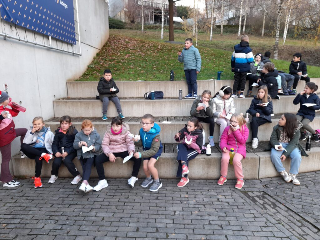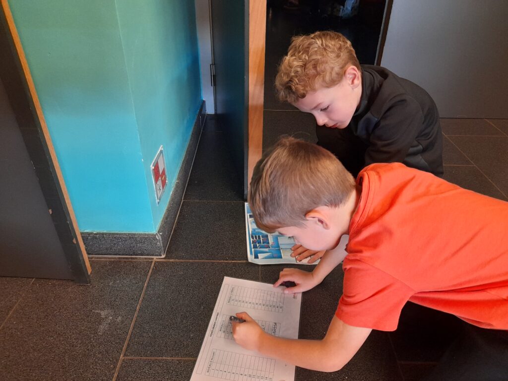 Pendant ce temps, l’autre groupe part pour une course d’orientation à l’intérieure afin de découvrir le bâtiment. Le but du jeu est de retrouver les balises fixées aux murs à partir d’un plan donné.