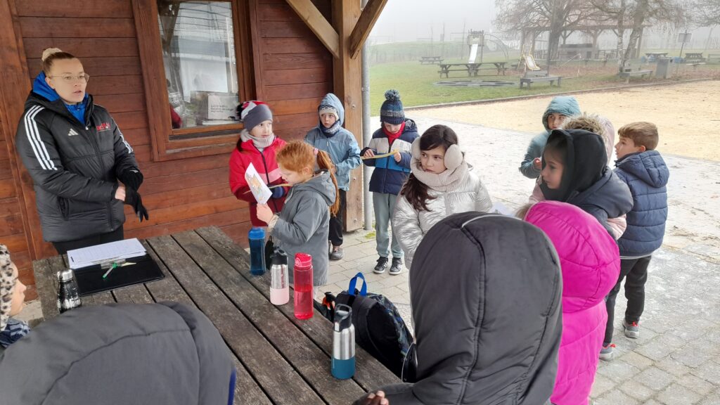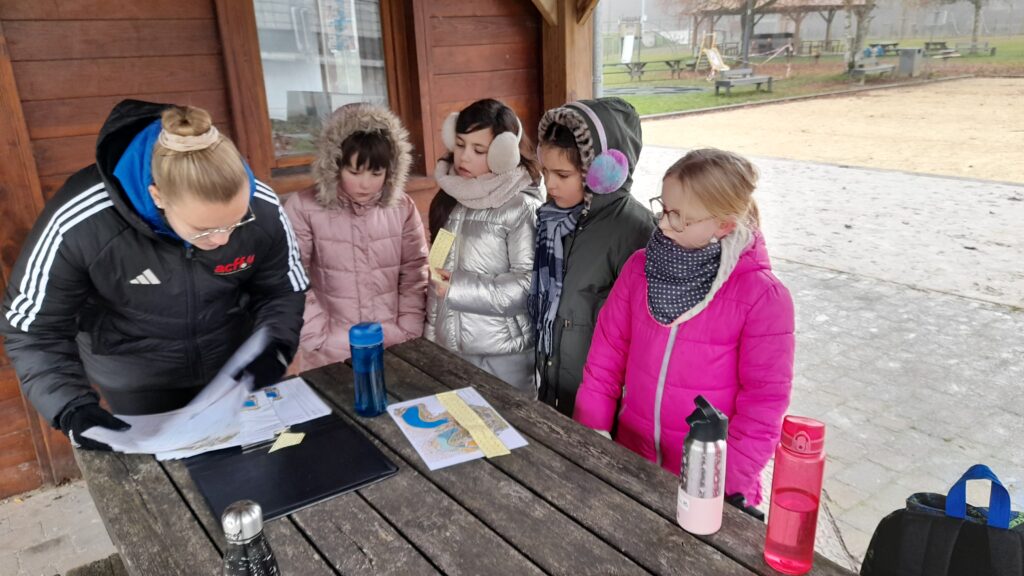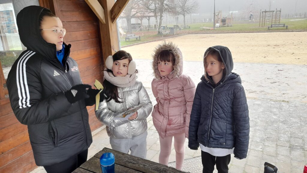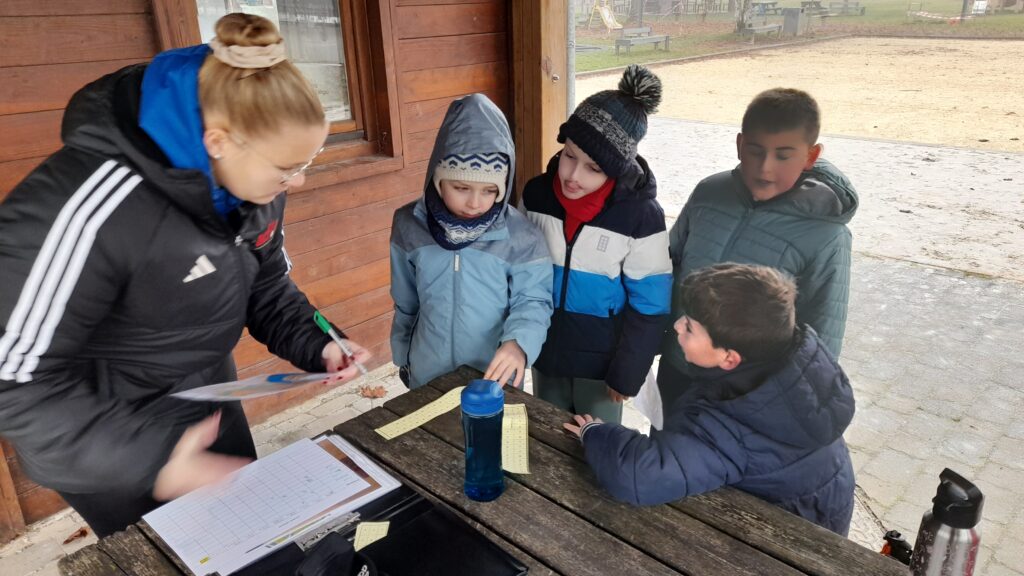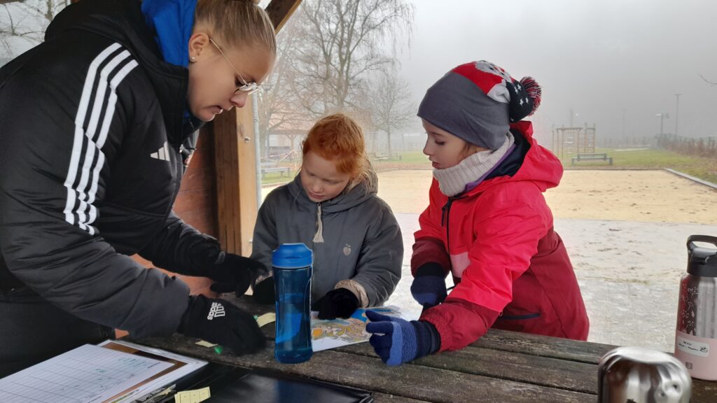 Nous sortons prendre l’air pour une course d’orientation à l’extérieur, dans le froid et le brouillard. Mais rien ne nous arrête…