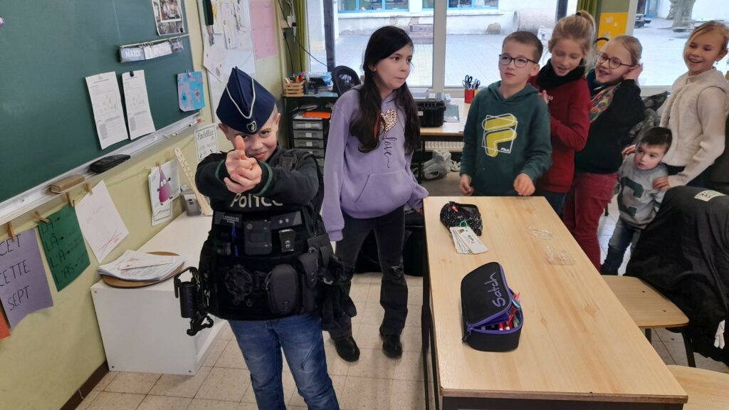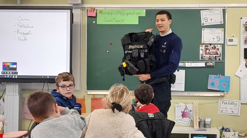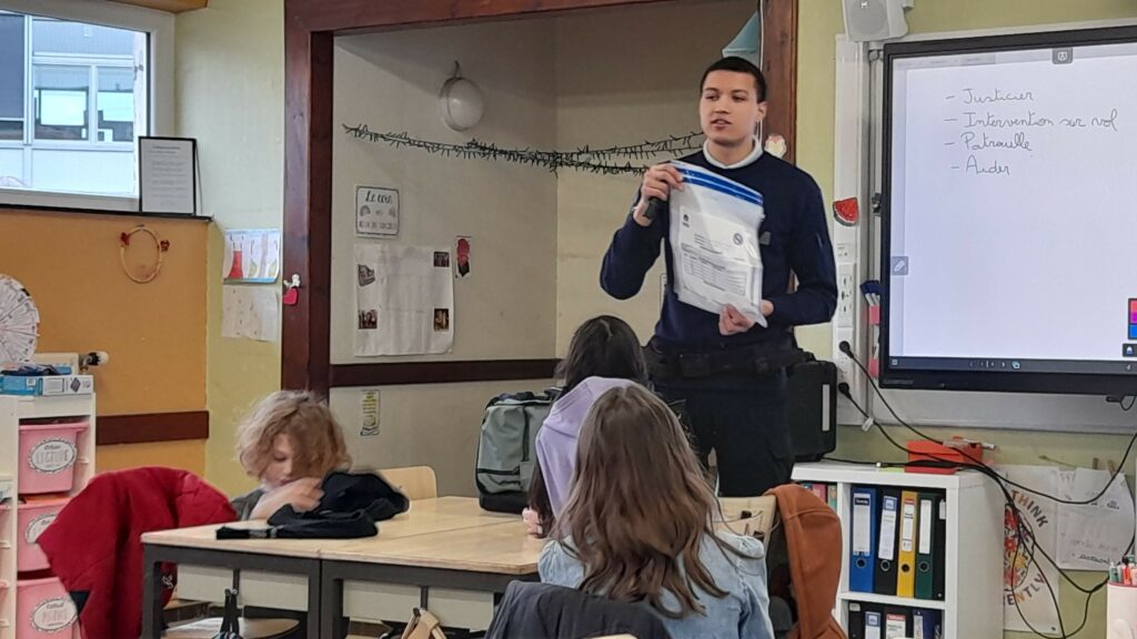 Ce mardi 2 février, Madame Marie a invité l’inspecteur de police M. Rodriguès pour qu’il nous explique en quoi consiste son métier.